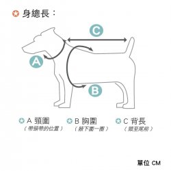 頸圍:繞著狗狗的脖子量一圈,可適當放鬆1~2CM。